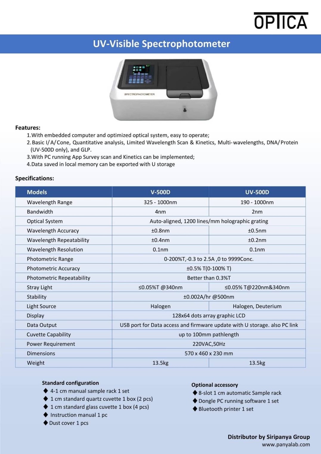 รุ่น UV-500D ยี่ห้อ Optica